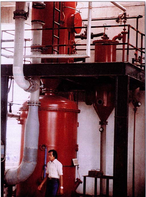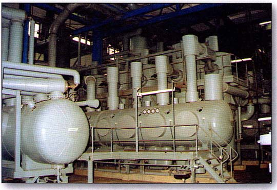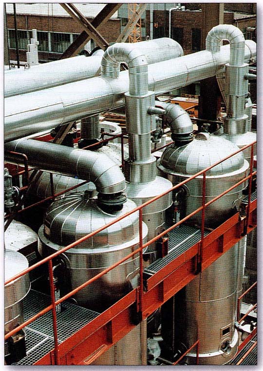 蒸發(fā)設(shè)備可分為普通多效蒸發(fā)器和閃蒸設(shè)備。Ebner閃急蒸發(fā)(簡稱閃蒸)設(shè)備是一種高效的多級連續(xù)真空蒸發(fā)設(shè)備,尤其適用于蒸發(fā)能力在5t/h以上,閃蒸設(shè)備因為其蒸發(fā)能力強、蒸汽耗用量小已在國內(nèi)廣泛推廣使用。酸浴閃蒸的特點是:
