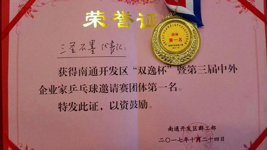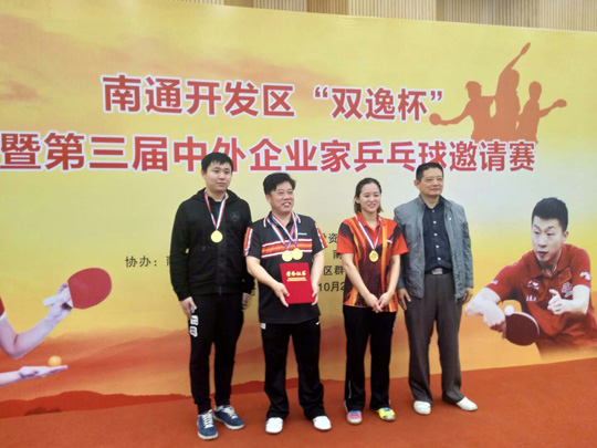 10月24日,三圣石墨代表隊(duì)參加南通開發(fā)區(qū)“雙逸杯”暨第三屆中外企業(yè)家乒乓球邀請(qǐng)賽,通過一天的緊張角逐,過關(guān)斬將,最終在24支代表隊(duì)中脫穎而出,獲得本次比賽冠軍。