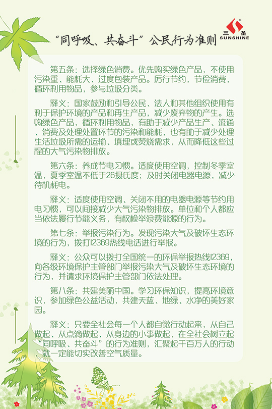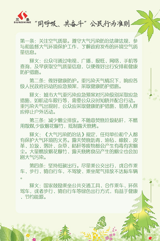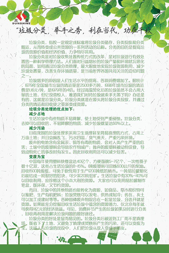 今年“三圣環(huán)保日”的主題為“三圣助力大環(huán)保,員工踐行小環(huán)?!?,我們的口號(hào)是:“踐行環(huán)保?從我們身邊的小事做起”。