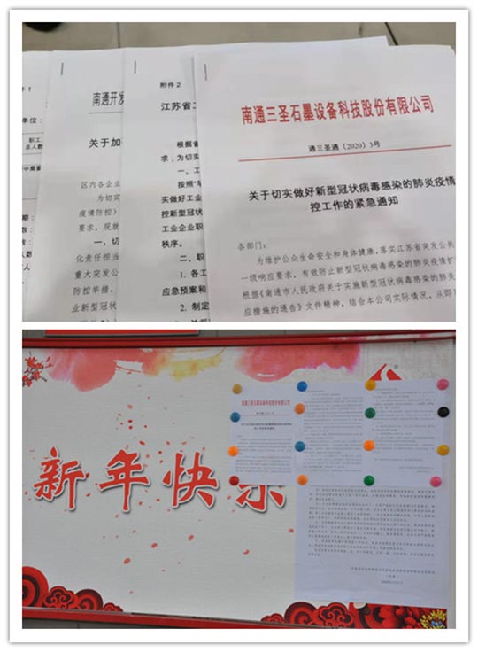 2020年伊始,在這場沒有硝煙的抗疫戰(zhàn)斗中,億萬中國人民團(tuán)結(jié)一心、同舟共濟(jì),眾志成城抗疫情。自爆發(fā)疫情以來,三圣企業(yè)集團(tuán)也立即成立防疫領(lǐng)導(dǎo)小組,緊急召開兩次會議,部署相關(guān)防疫工作,嚴(yán)格執(zhí)行《南通市人民政府關(guān)于實(shí)施新型冠狀病毒感染的肺炎疫情一級響應(yīng)措施的通告》文件精神。