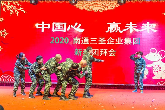 為了弘揚體育健身精神,本次年會上凸顯對“體育強則中國強”的高度關(guān)注:曾參加今年“南通國際馬拉松”賽事的三圣健將們,高舉國旗、彩球,插上雙翼、身披戰(zhàn)袍,用自己的特殊方式,威風凜凜地依次入場;彩虹跑小組成員也自信亮相,搞怪機靈的鼠大哥帶著鼠弟鼠妹接過豬師兄的接力棒開啟了2020新大門,合唱合舞燃爆現(xiàn)場。