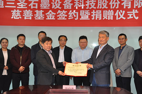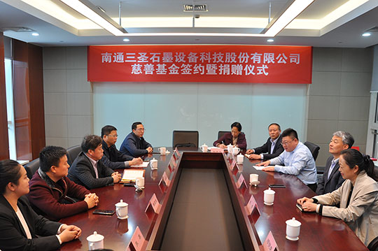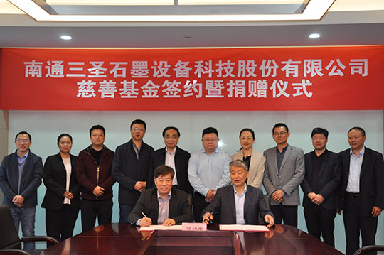 2020年4月21日,“南通三圣石墨設(shè)備科技股份有限公司慈善基金簽約暨捐贈儀式”在南通開發(fā)區(qū)能達(dá)大廈401會議室召開,該項(xiàng)基金將主要用于開發(fā)區(qū)安老扶幼、助學(xué)助醫(yī)、扶貧賑災(zāi)、助殘濟(jì)困、公益環(huán)保等慈善公益事業(yè),推動該區(qū)慈善事業(yè)的健康發(fā)展。
