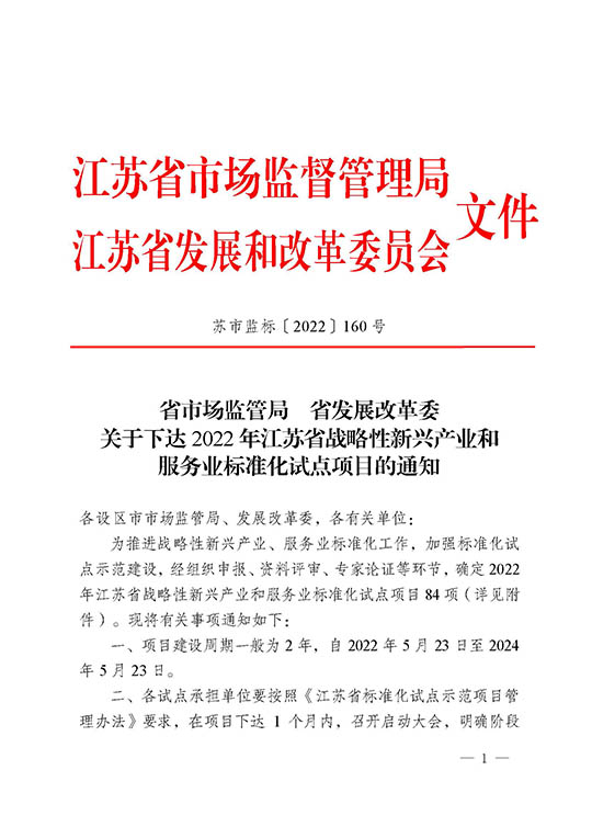 南通三圣標準化工作再傳捷報,公司申報的“石墨設備標準化試點”項目獲得江蘇省市場監(jiān)督管理局、江蘇省發(fā)展和改革委員會正式立項,成為2022年江蘇省戰(zhàn)略性新興產(chǎn)業(yè)標準化試點41個項目之一,也是南通市獲此立項的兩個項目之一 。