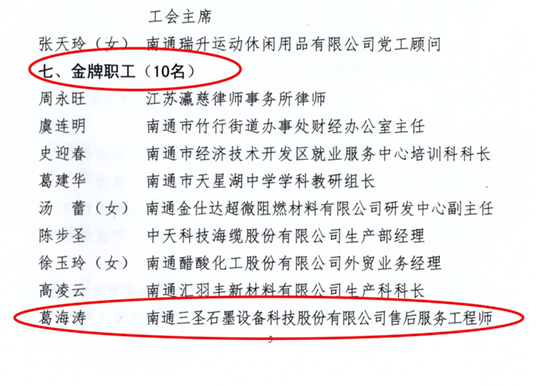 三圣奮斗史中閃耀著這樣一顆璀璨之星,他以堅(jiān)定的信念和不懈的努力,登上榮譽(yù)巔峰,成為開發(fā)區(qū)當(dāng)之無愧的一名“金牌員工”,并被三圣集團(tuán)董事會(huì)、三圣工會(huì)授予“終身榮譽(yù)職工”的光榮稱號(hào)。