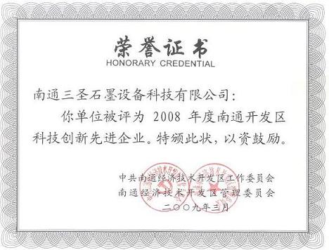 我公司被南通經(jīng)濟(jì)技術(shù)開發(fā)區(qū)評(píng)為2008年度技術(shù)創(chuàng)新先進(jìn)單位